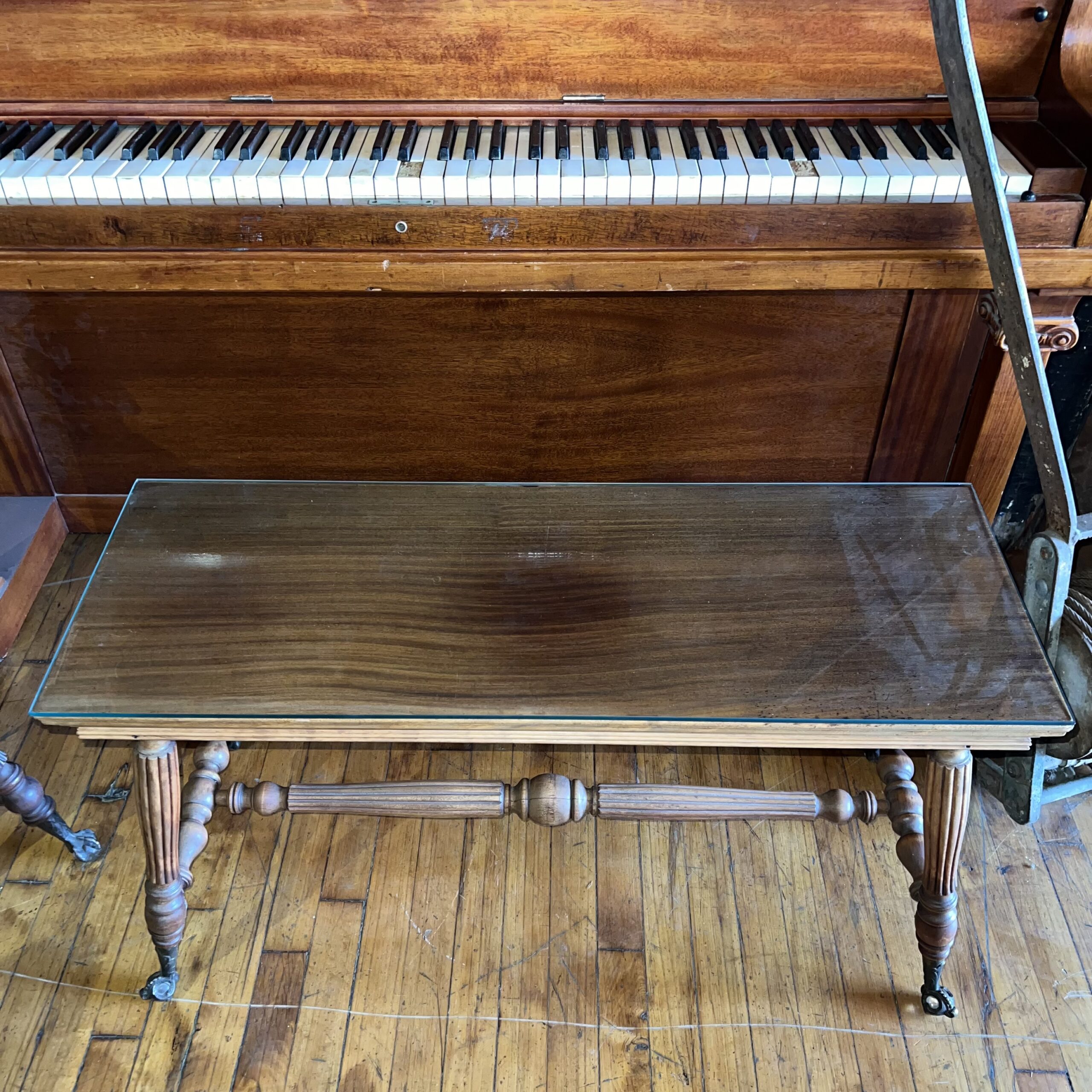 Antique Piano Bench w Glass Clawfeet