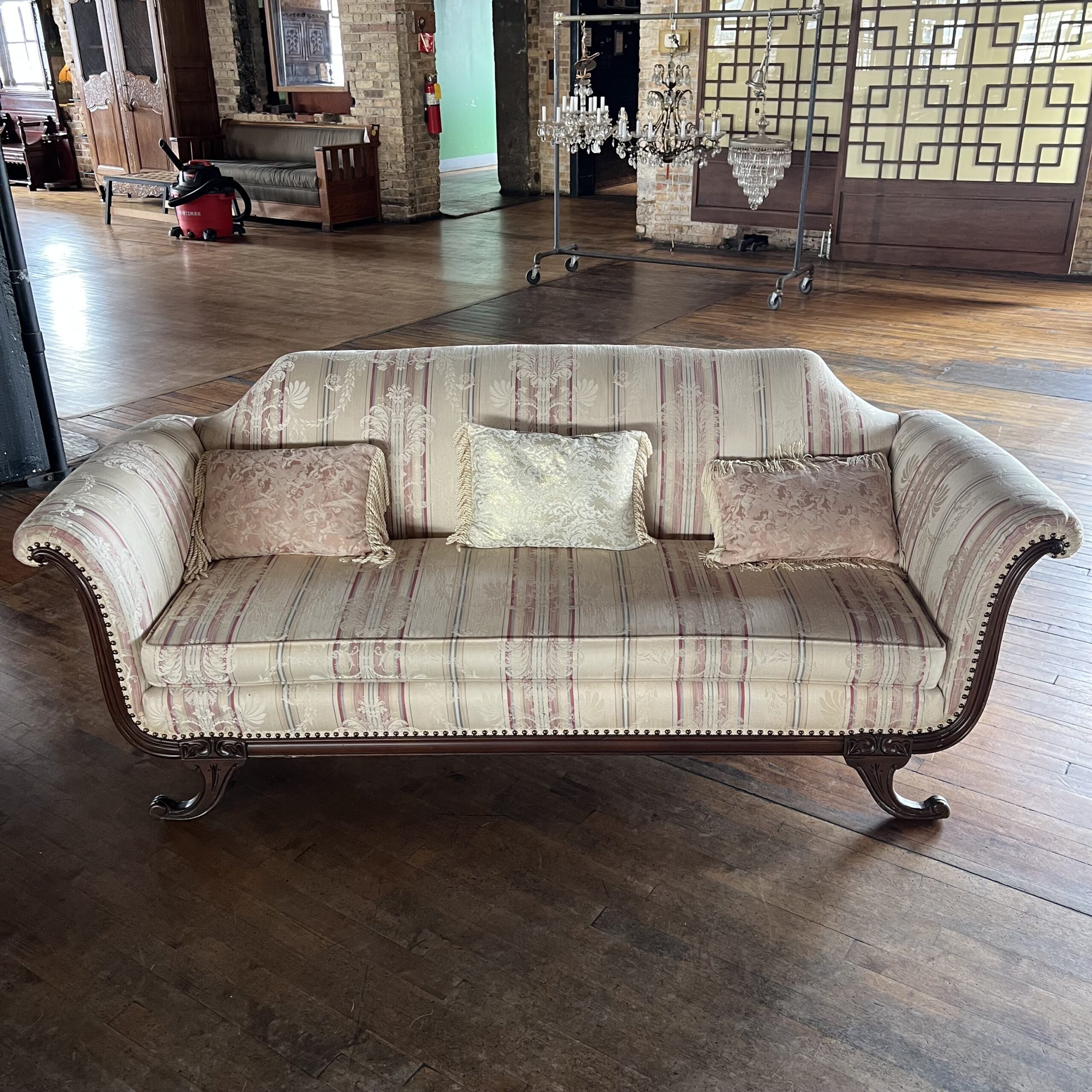 Antique Carved Couch w/Pinstripe Upholstery quantity