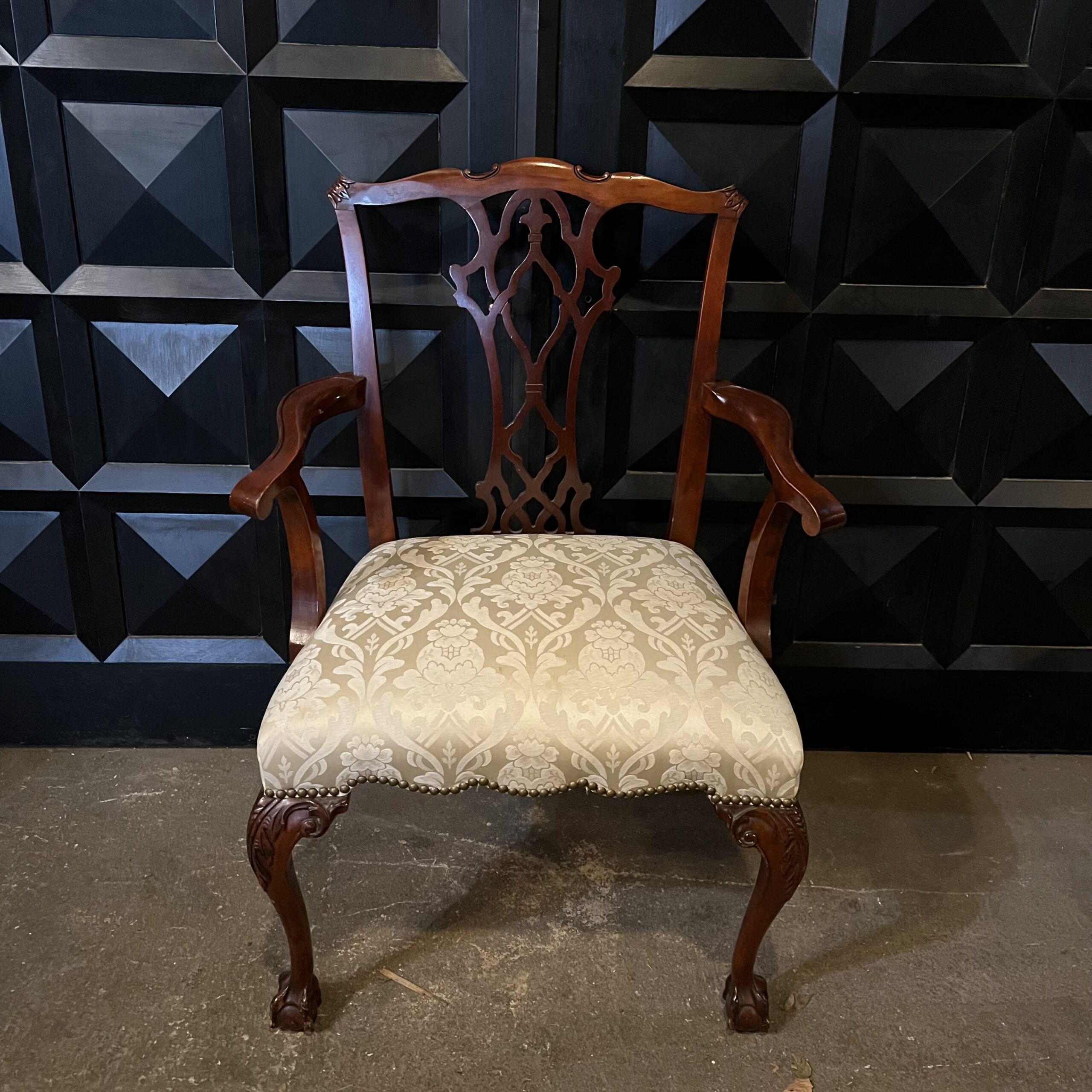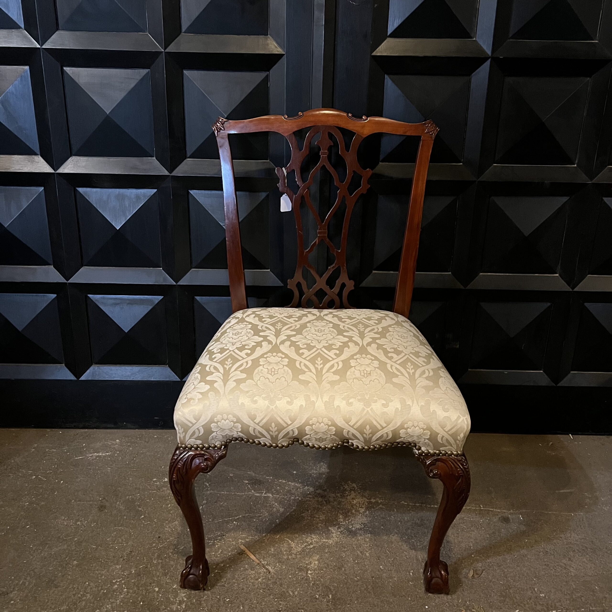 Mahogany Chippendale Clawfoot Dining Chair w White Upholstry