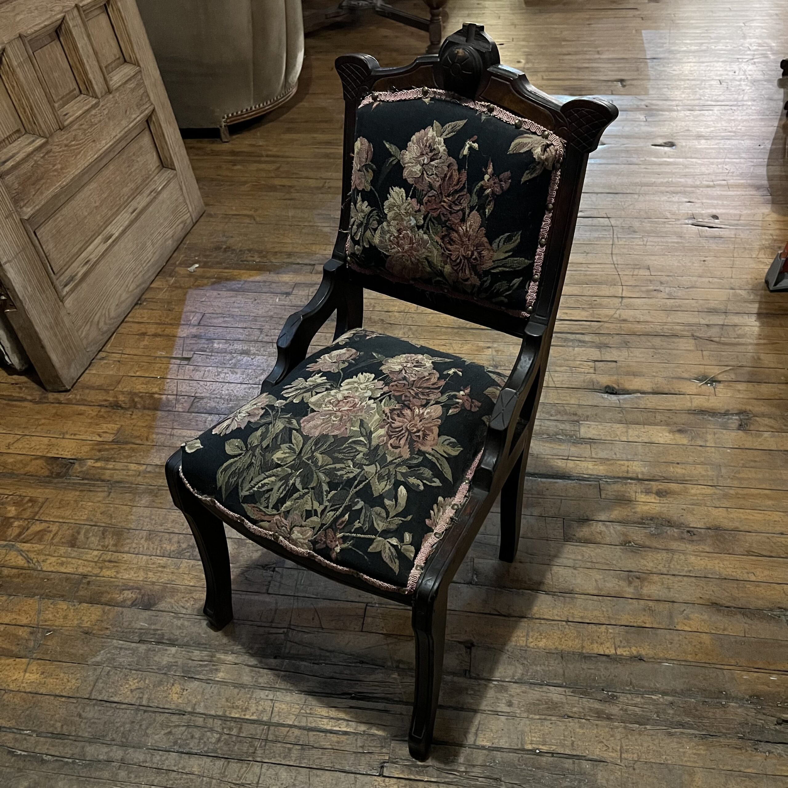 Eastlake Style Navy Floral Print Chair
