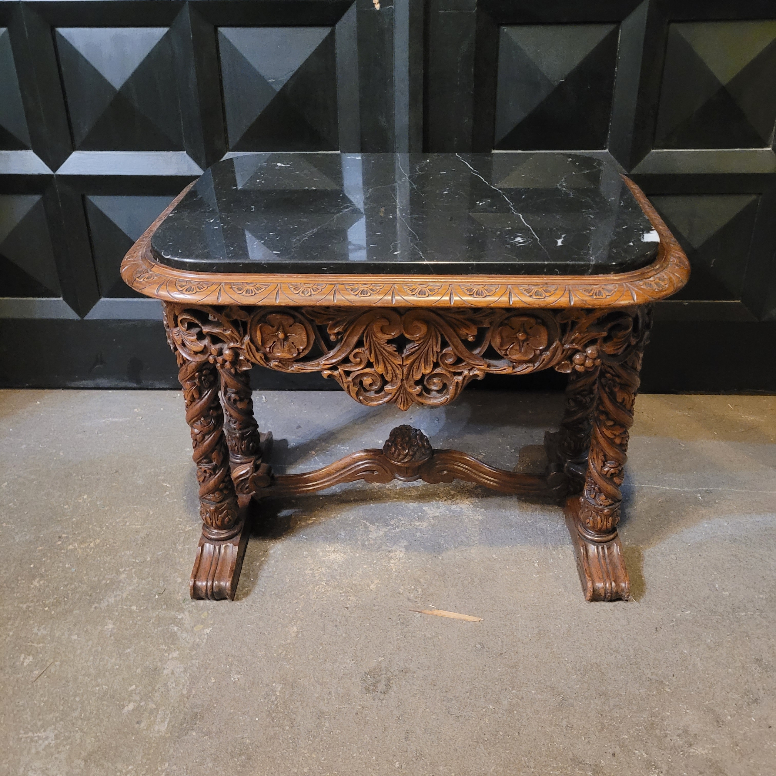 Antique Carved Mahogany Side Table w Black Marble Top quantity