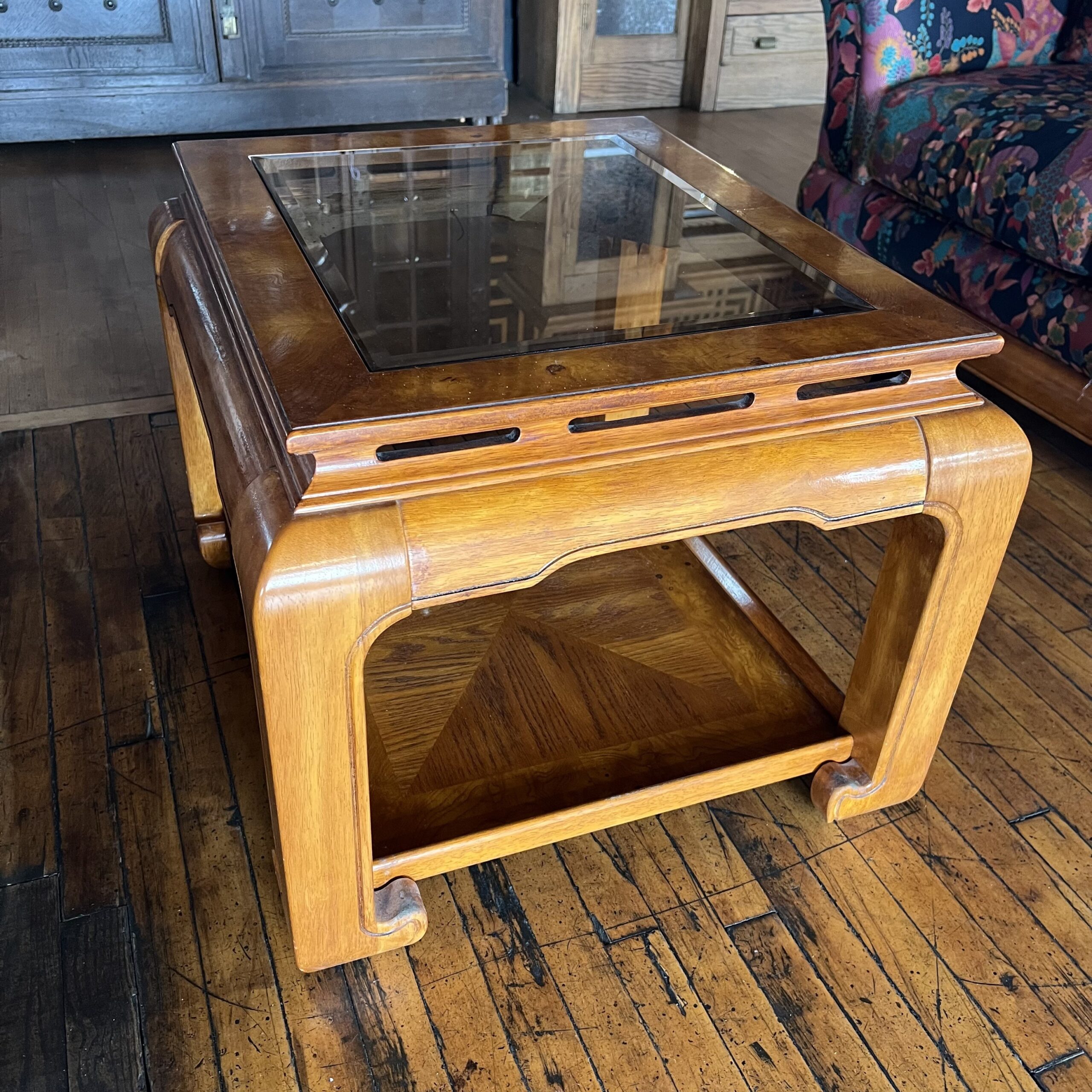 Burlwood Asian Smoked Glass Side Table
