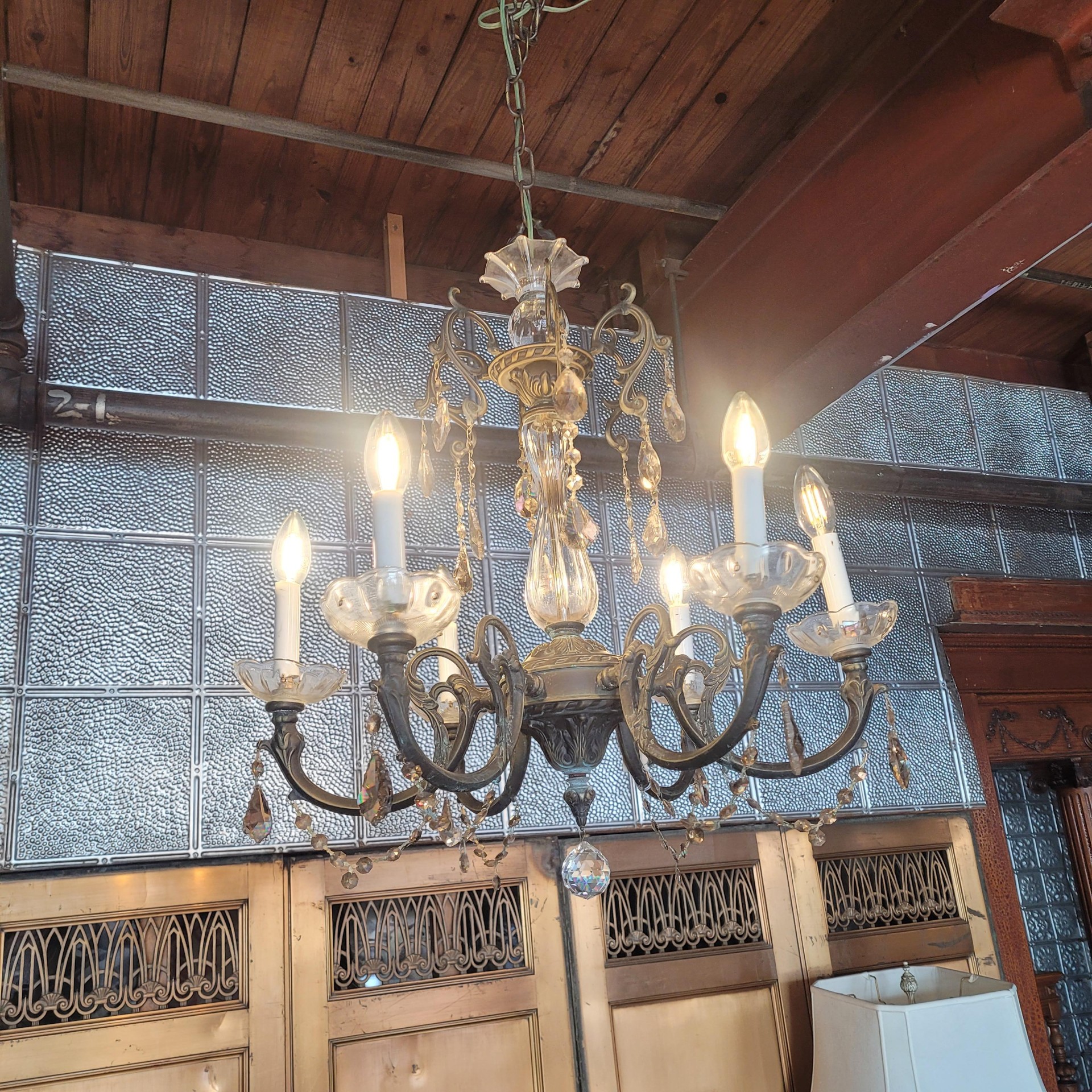 6 Light Copper w Prisms Chandelier quantity