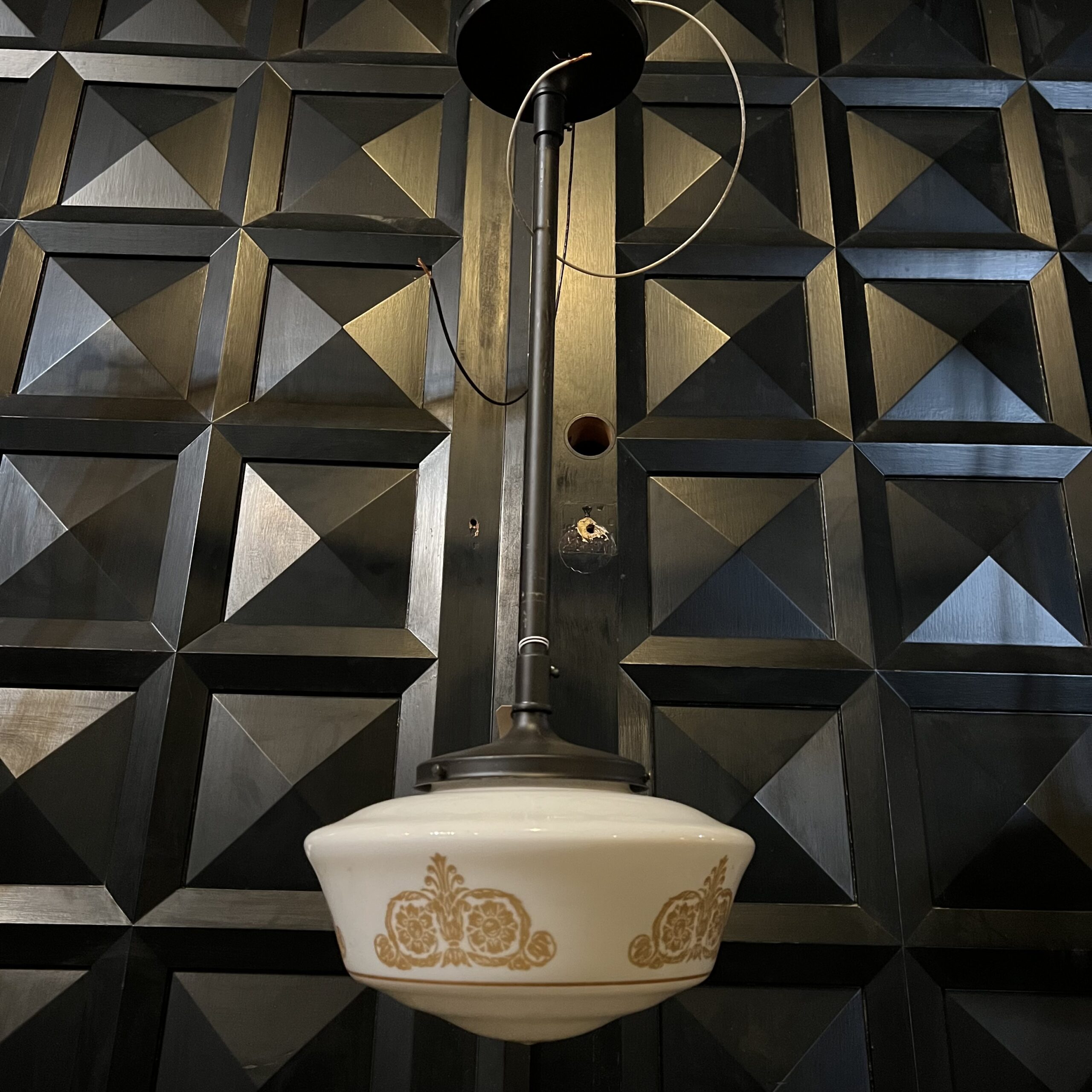 This is a vintage shade with new flush mount hardware.