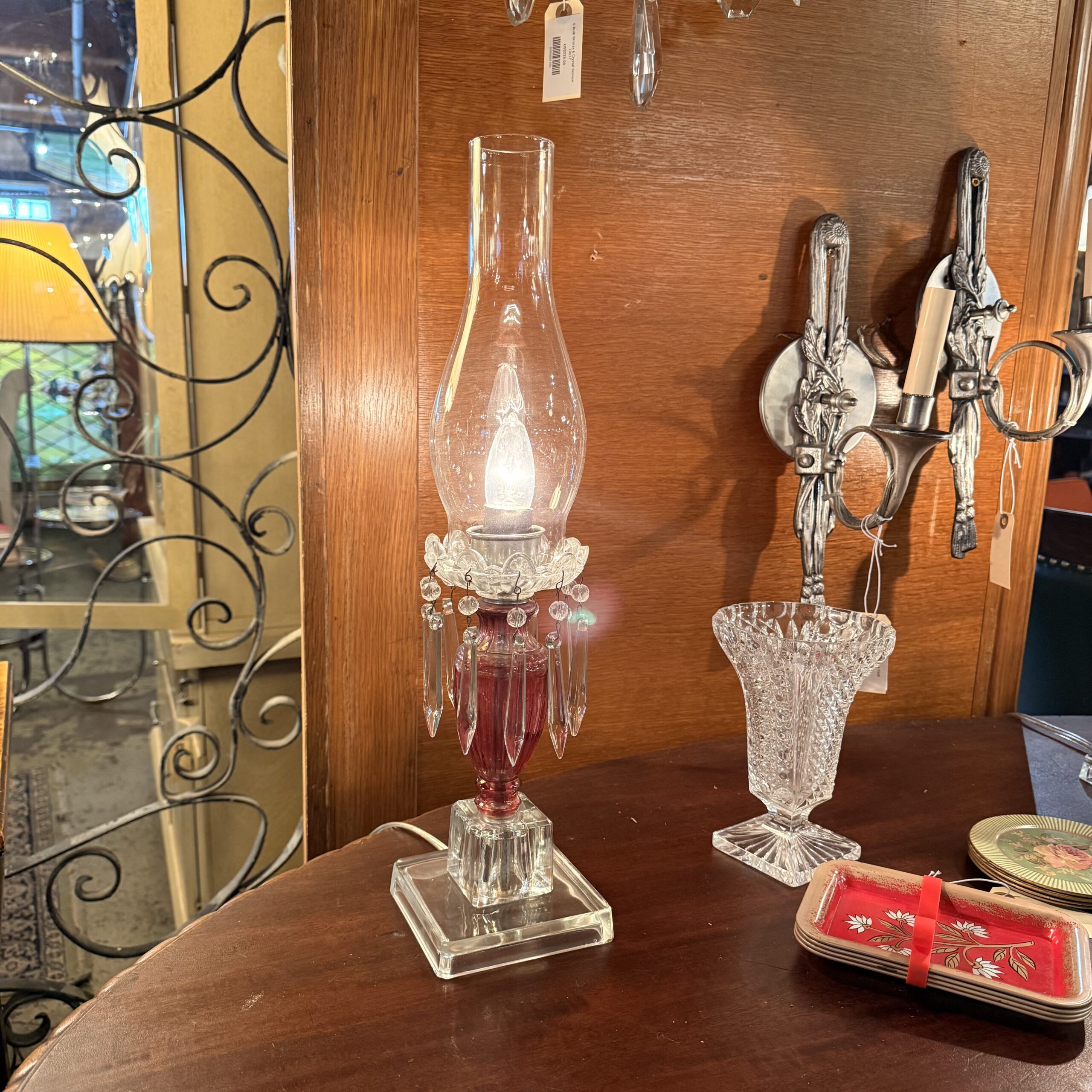 Rose Glass Crystal Hurricane Lamp