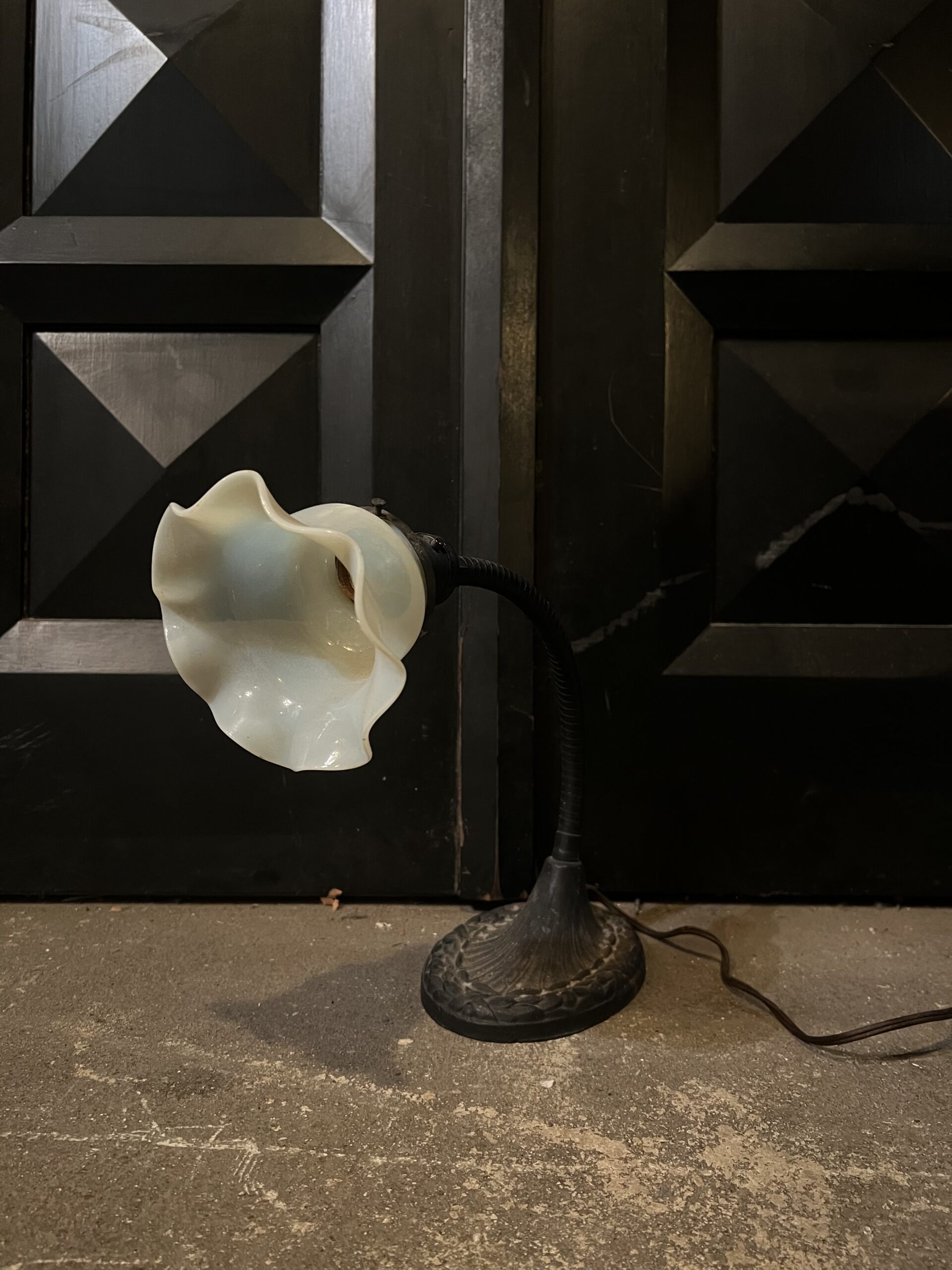 Skirted Uranium Glass Vaseline Shade Table Lamp